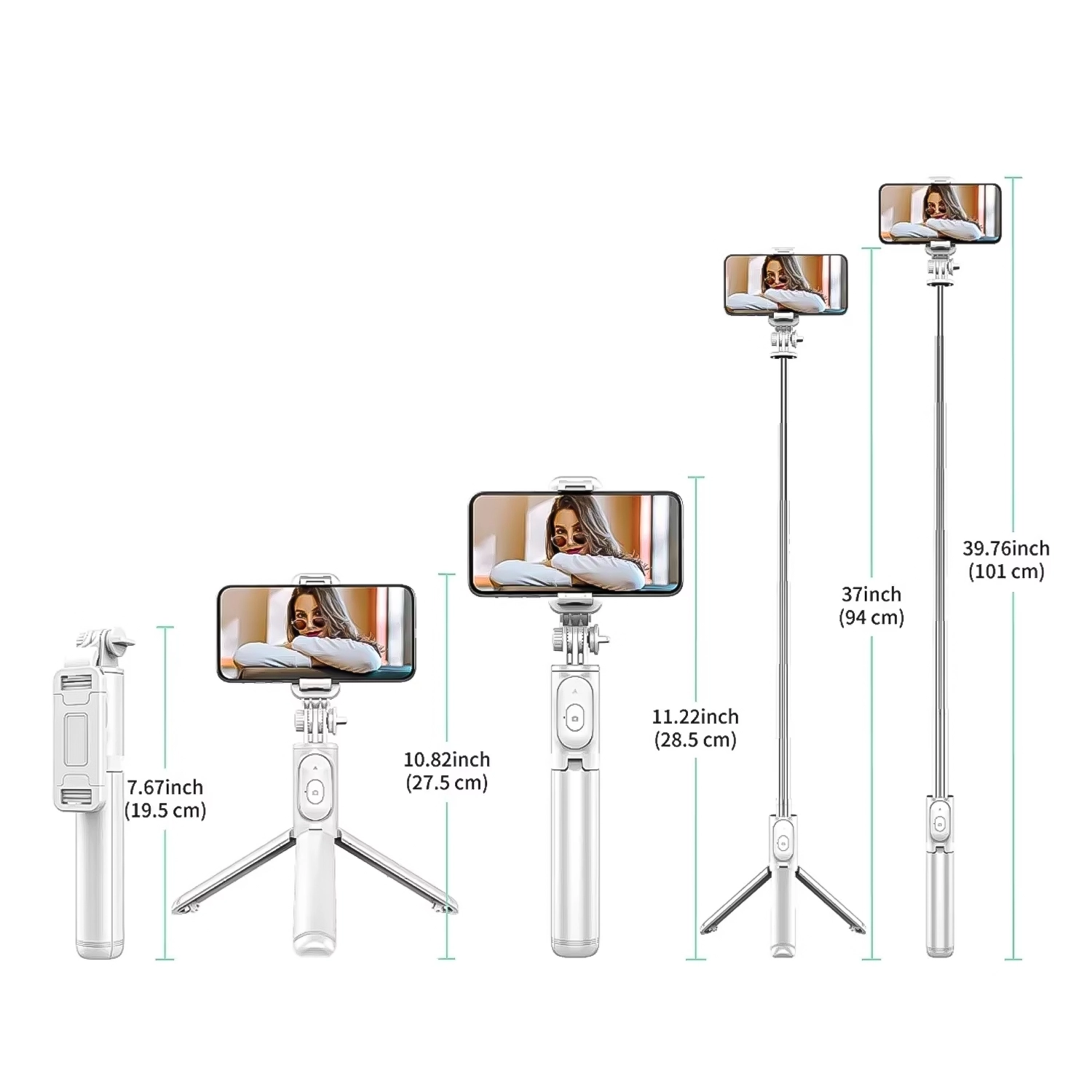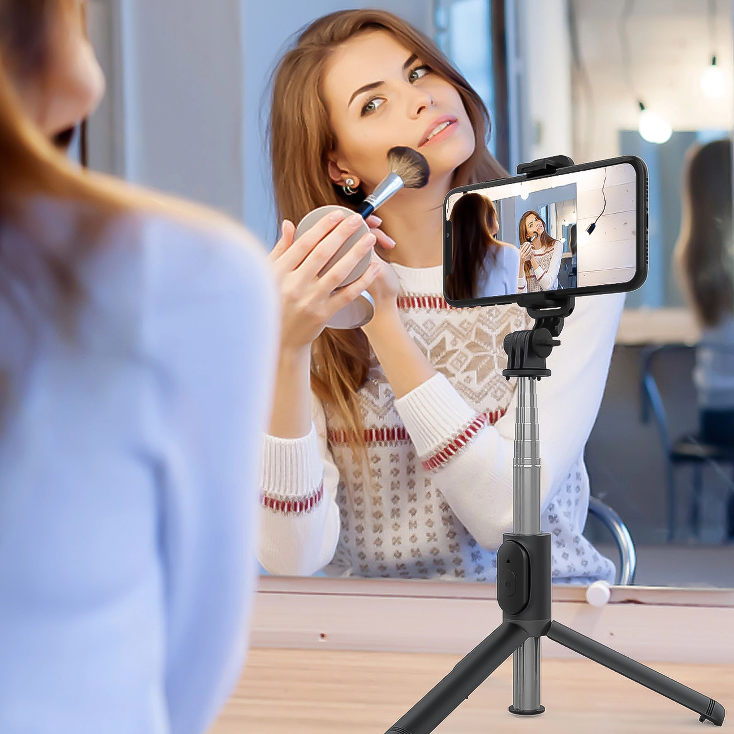 - Im Lieferumfang enthalten: Selfie-Stick mit Stativfunktion, ausziehbare Bluetooth-Fernbedienung