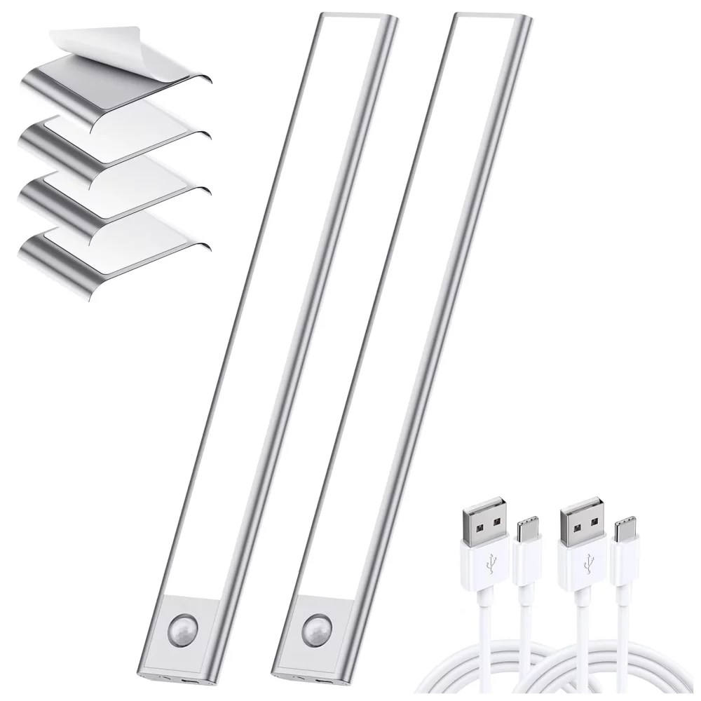 2x Lampka szafkowa z czujnikiem ruchu Listwa Alogy Motion Sensor LED Light 60cm do garderoby szafy kuchni Srebrna