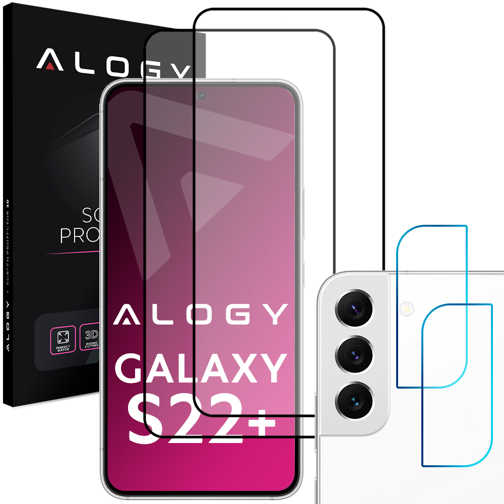 2x Szkło Alogy Full Glue FC + 2x Szkło na obiektyw kamerę do Samsung Galaxy S22 Plus