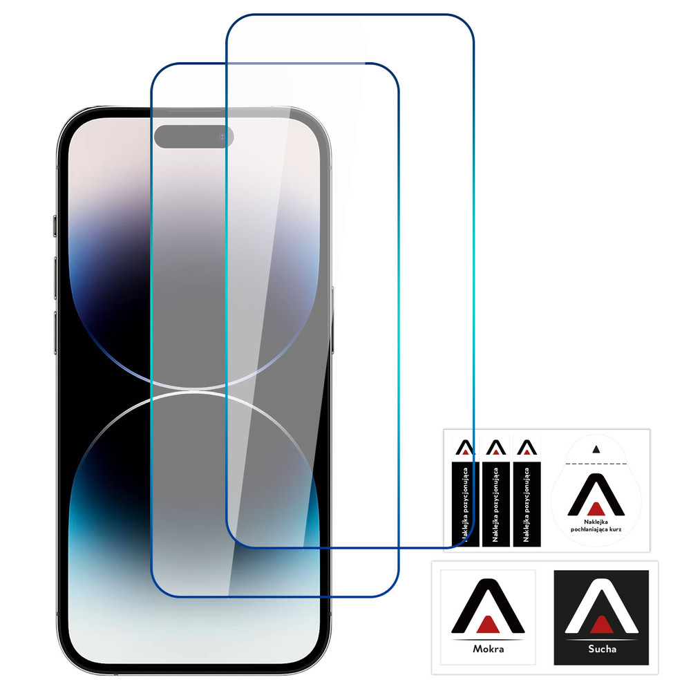 - W zestawie: 2x Szkło hartowane 9H Screen Protektor Pro+, 1x Ściereczka morka, 1x Ściereczka sucha, 1x Zestaw naklejek