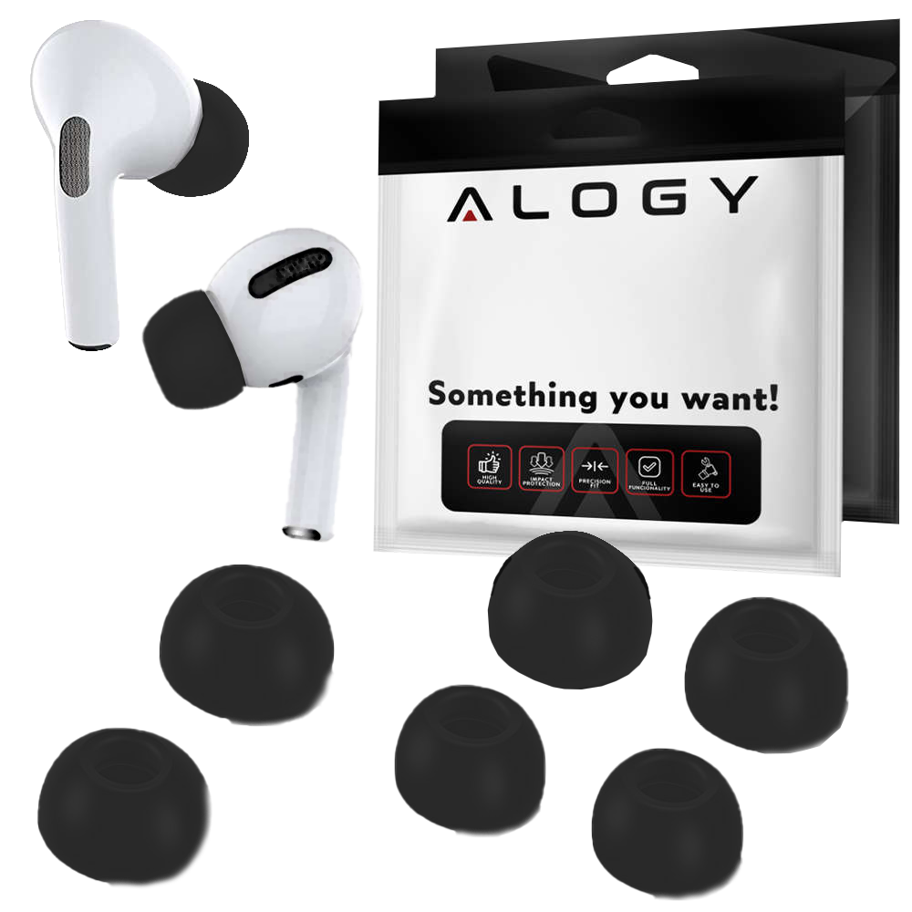 Opinie o 6x Nakładki silikonowe zapamiętujące Alogy S M L do Apple AirPods Pro czarne
