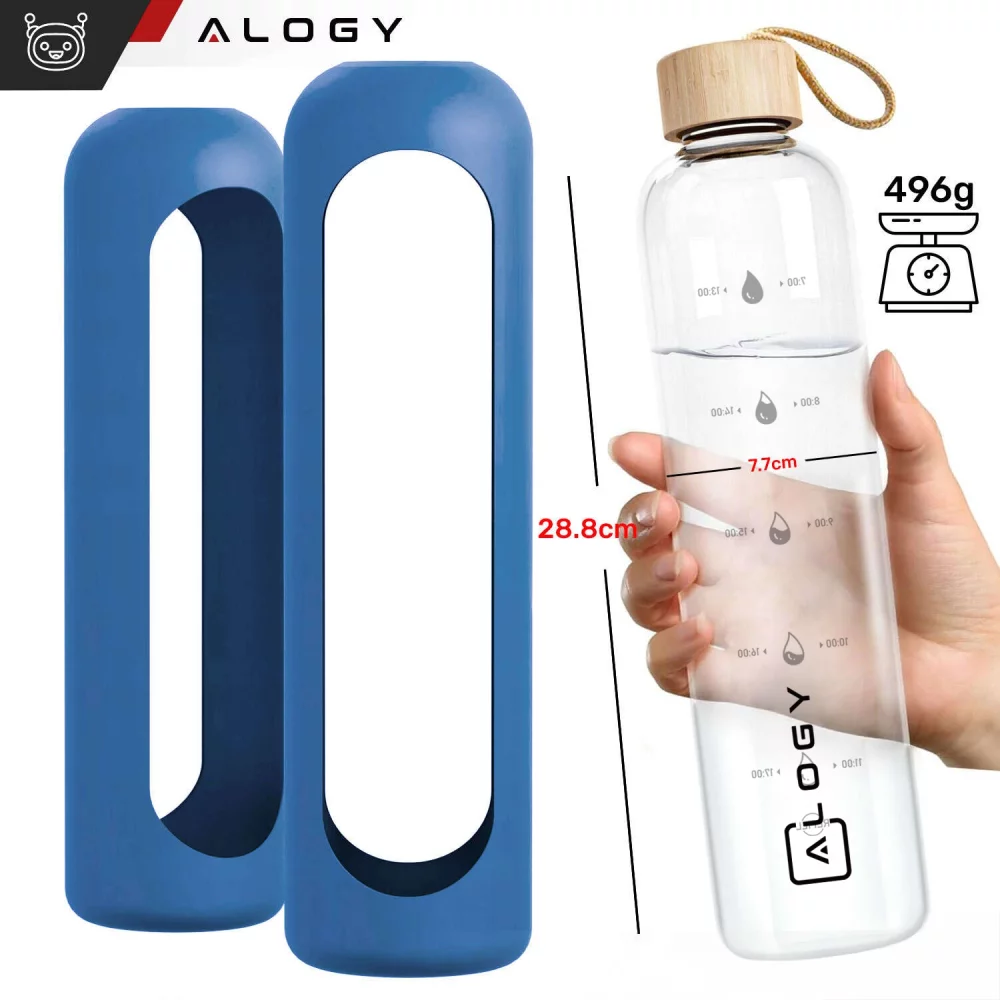 Opinie o Butelka szklana duża bidon na napoje do picia Alogy Miarka motywacyjna 1l 1000ml etui silikonowe Niebieska