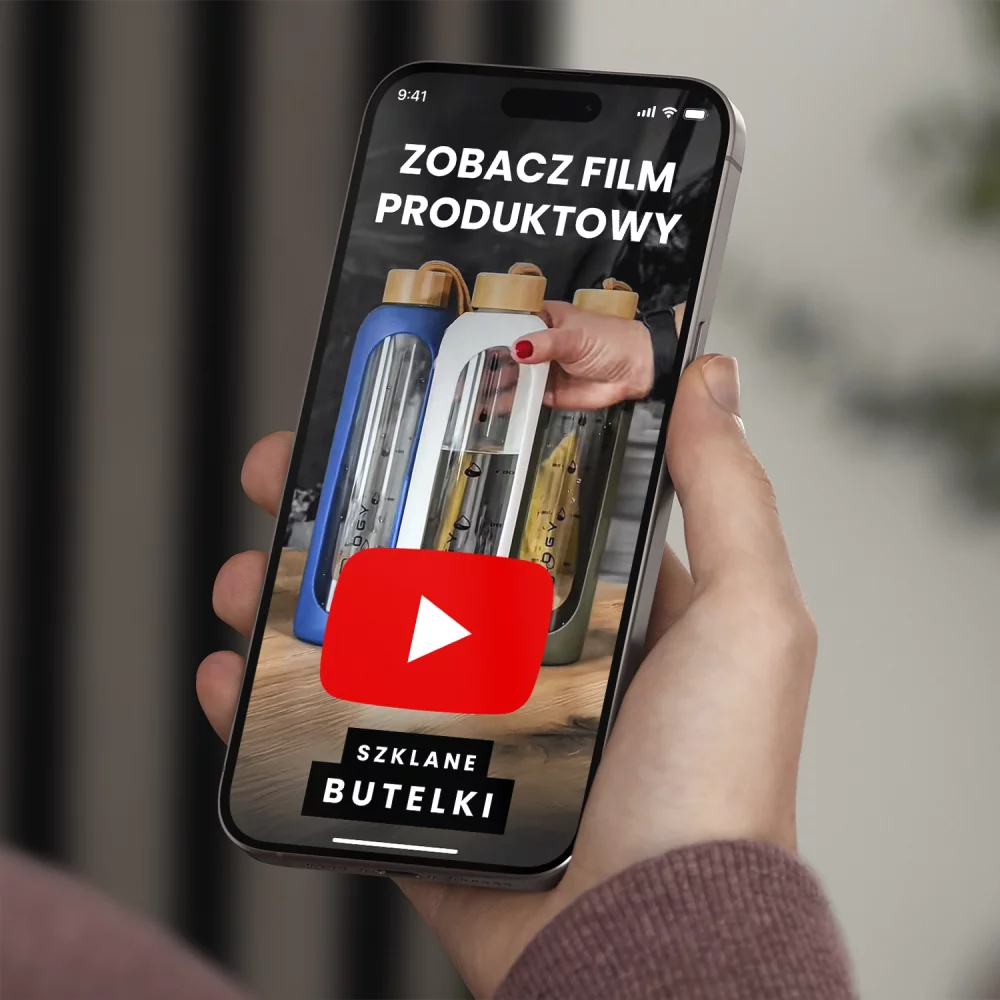 - W zestawie: 1x Butelka szklana/ bidon, 1x Silikonowy pokrowiec