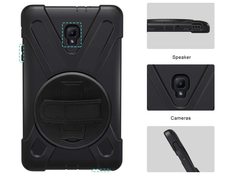 Dużym atutem pokrowca jest mocny rzep, który został umieszczony w tylnej części obudowy. Rzep umożliwia przyczepienie urządzenia do dłoni, dzięki czemu mamy pewność, że Galaxy Tab A 8.0 nie wypadnie nam z ręki, np. podczas robienia zdjęć. Dodatkowo producent wyposażył etui w dopinany pasek, który można przymocować do pokrowca. Pasek m.in. umożliwia przymocowanie urządzenia do zagłówka, dzięki czemu nasz tablet może służyć jako świetne źródło rozrywki, podczas długich podróży.