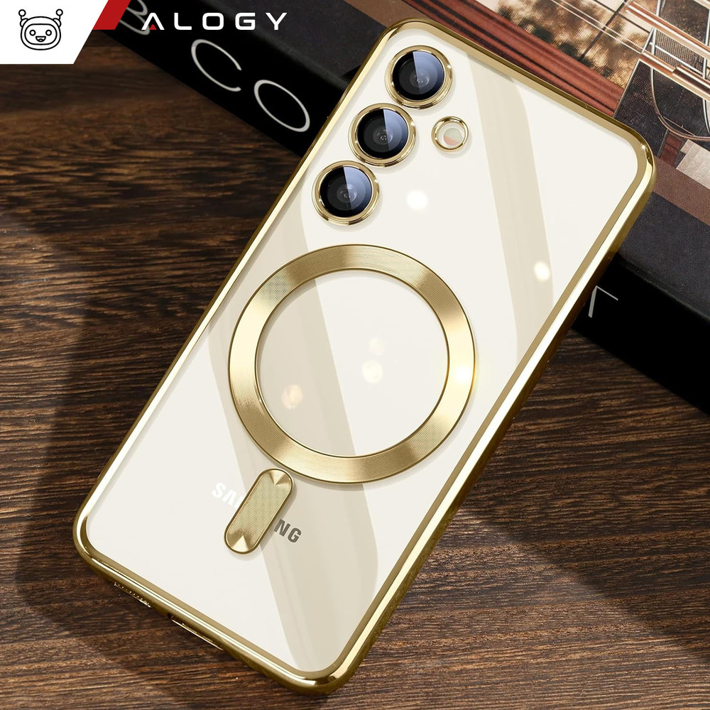Etui do Samsung Galaxy S24+ Plus Mag Safe Glamour Case Ring obudowa ochrona aparatów Alogy Złote przezroczyste + Szkło