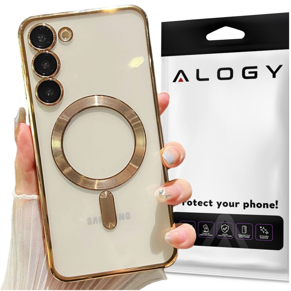 Etui do Samsung Galaxy S24+ Plus Mag Safe Glamour Case Ring obudowa ochrona aparatów Alogy Złote przezroczyste