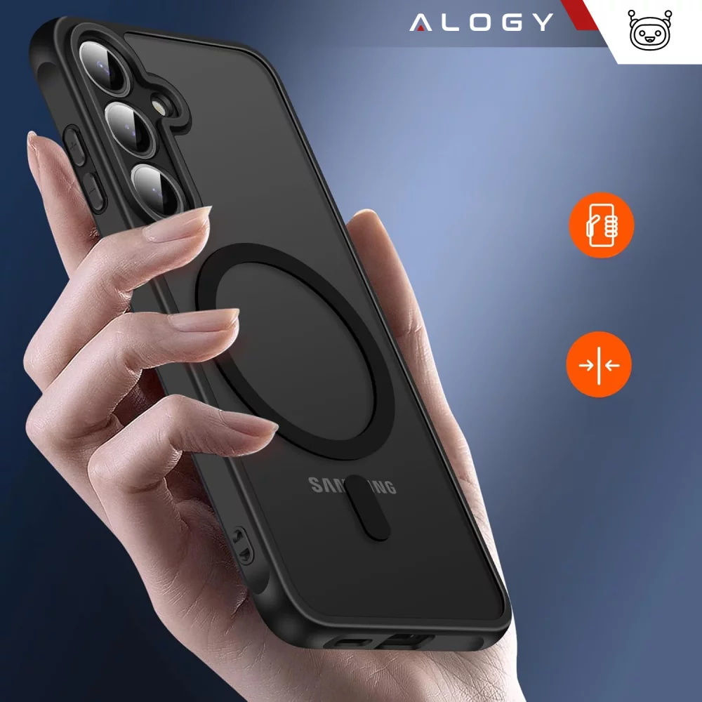✅ Etui Alogy MagSafe HybridMag™️ Matte Case dedykowane do Samsung Galaxy S25 Plus oferuje ochronę klasy premium dzięki połączeniu elastycznej ramki z poliuretanu i twardych plecków z poliwęglanu. Matowe wykończenie nadaje elegancji, skutecznie chroniąc aparat i obiektywy, a smukły design nie pogrubia telefonu.