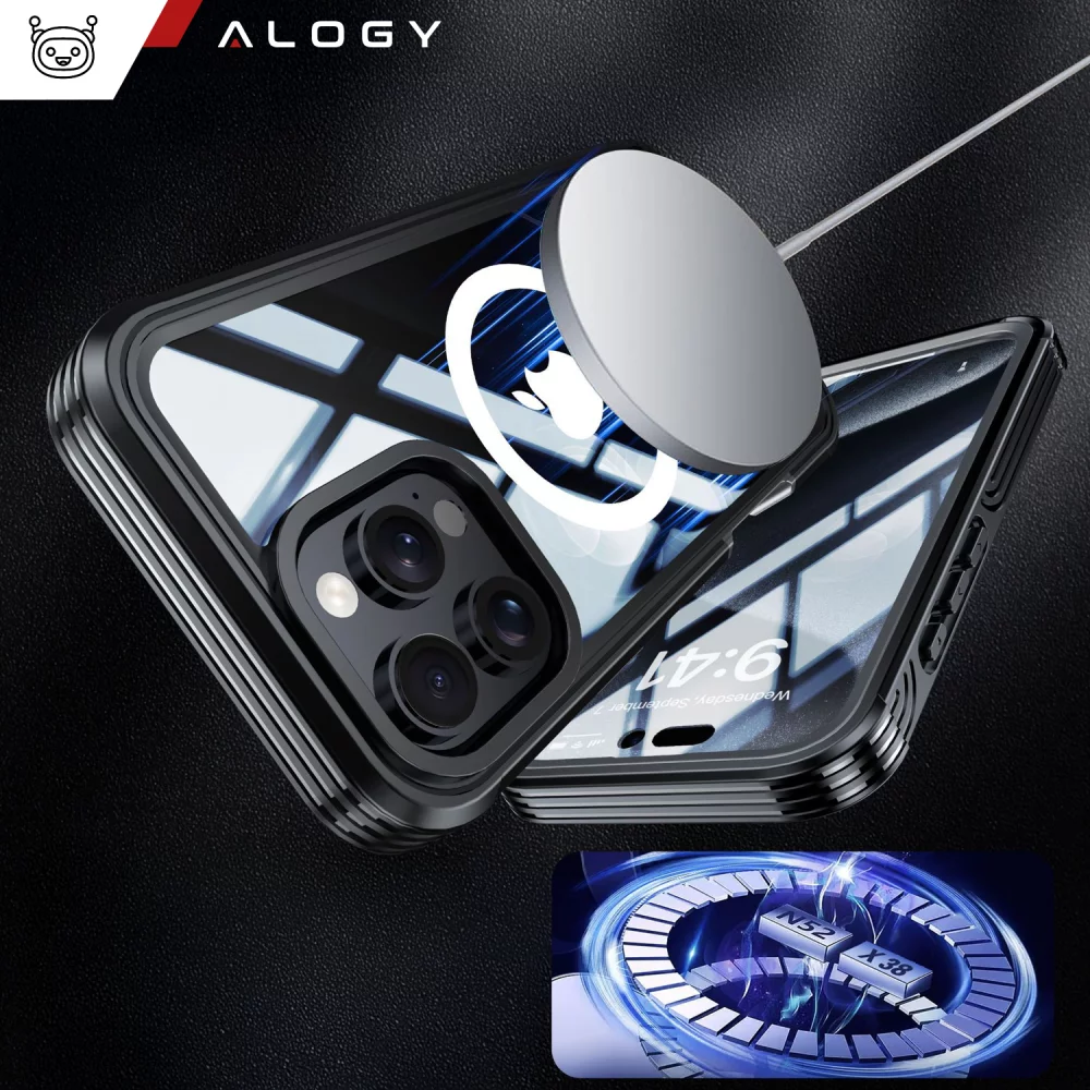 Etui ochronne na telefon do Apple iPhone 16 Pro Max Alogy Shield360 MagCase™️ do MagSafe obudowa z ochroną wyświetlacza i aparatu Czarne