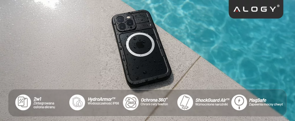 ⭐ Najnowszy model ⭐ Certyfikat IP68 ⭐ Uszczelnienie przyciski⭐ ShockGuard Air™ – amortyzacja ⭐ MagLock Ring™ – lepszy MagSafe ⭐ AquaShield Ports™ – zaślepki ⭐ ClearBack – przezroczysty tył ⭐ PhotoSafe Lens ⭐ ClickFit – szybki montaż ⭐ Slim-Armor ⭐ Case&Glass 2w1 ⭐10 lat doświadczenia w branży ⭐ ponad 50.000 zadowolonych klientów marki Alogy ⭐
