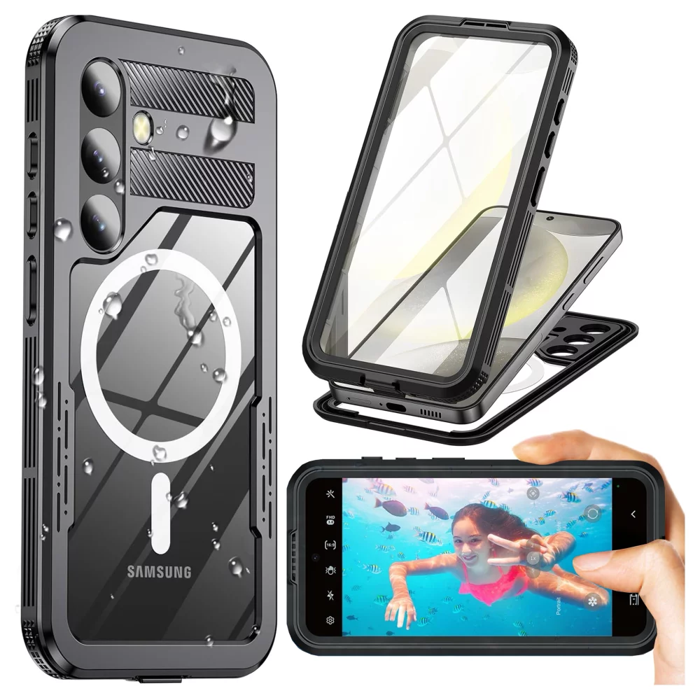 Etui Wodoodporne Alogy IP68 Case z przezroczystym tyłem Pancerna obudowa 360 do MagSafe do Samsung Galaxy S24