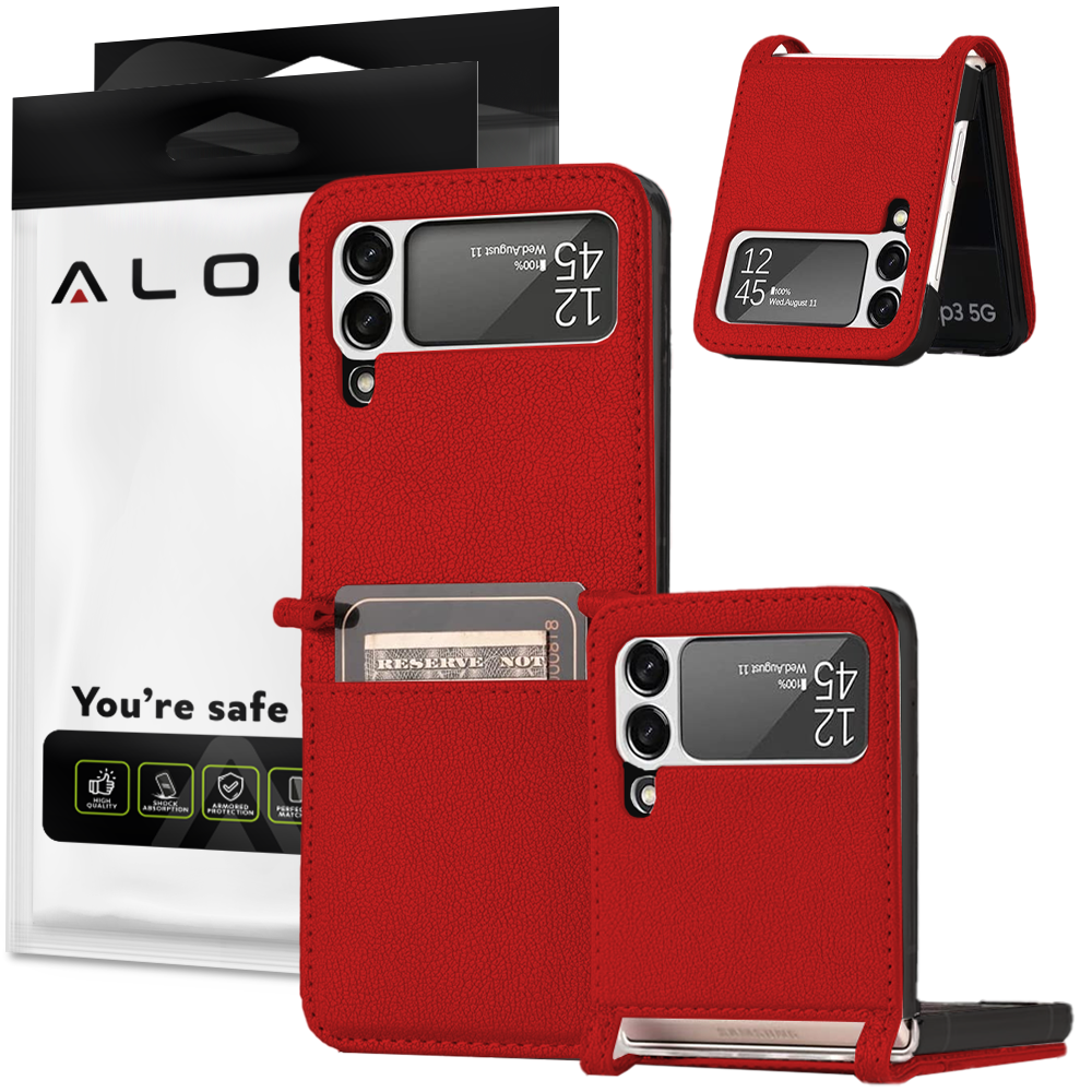 Etui z klapką portfel Alogy skórzane do Samsung Galaxy Z Flip 3 5G Czerwone