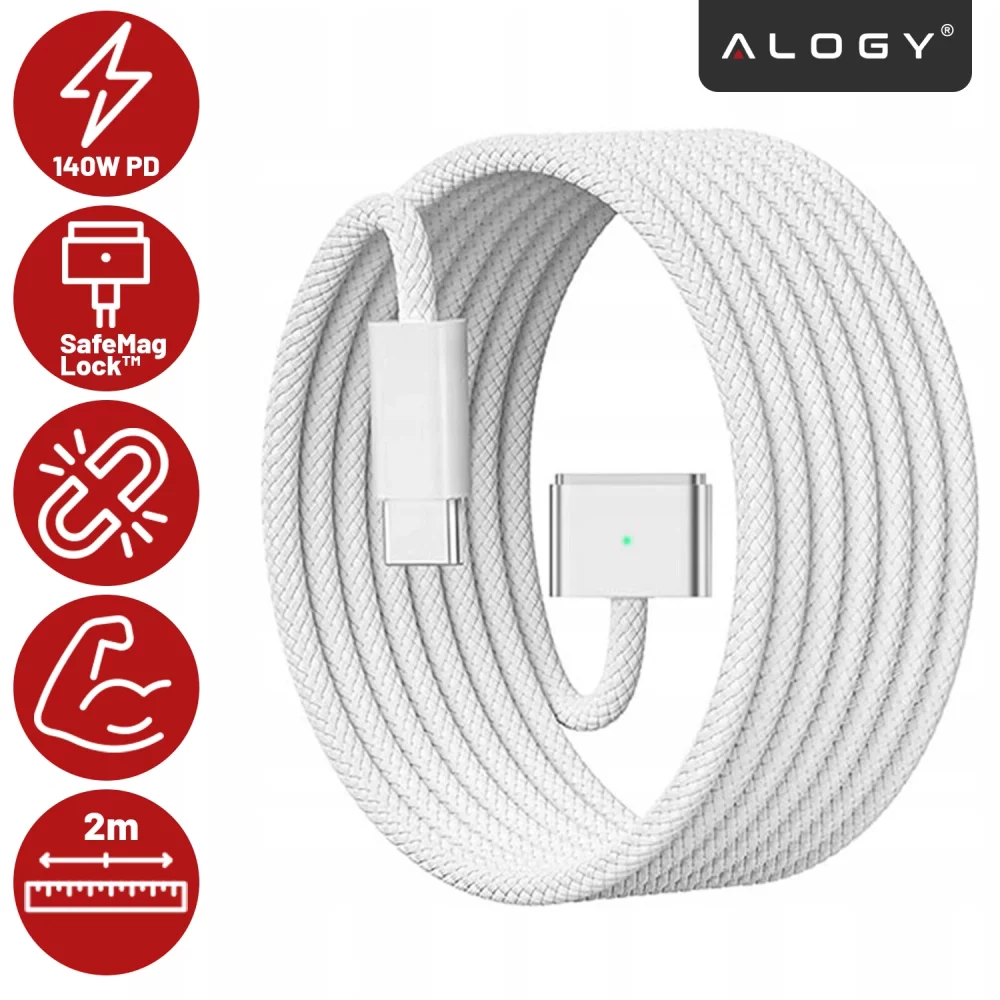 ⭐ Najnowszy model ⭐ Certyfikat PD 3.1 140W ⭐ Stabilna moc ⭐ Mocny magnes ⭐ Pleciony nylon ⭐ Aluminiowe końcówki ⭐ 2m długości ⭐ Szybkie ładowanie ⭐ Pełna zgodność z MagSafe 3⭐ Trwała izolacja ⭐ Elastyczna konstrukcja ⭐ Bezpieczne zasilanie ⭐ Wysoka żywotność ⭐10 lat doświadczenia w branży ⭐ ponad 50.000 zadowolonych klientów marki Alogy ⭐