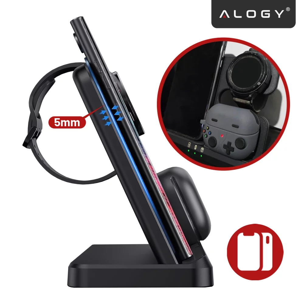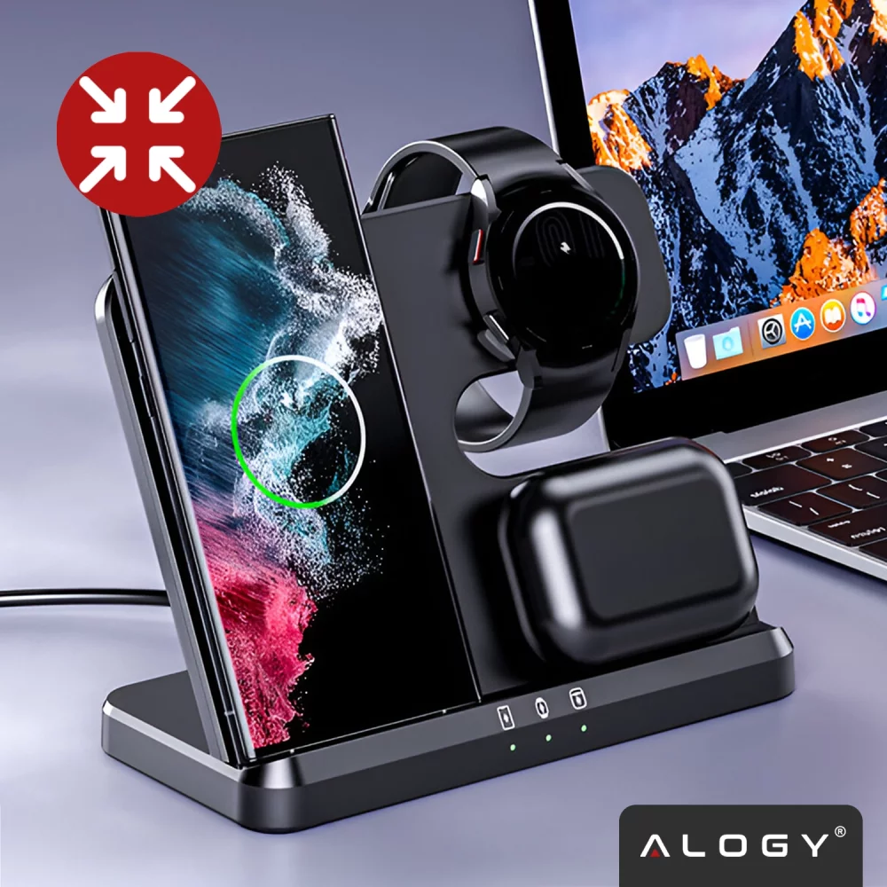 ▶️ Ładowarka Bezprzewodowa 3w1 Alogy QI 15W Szybka QC do Samsung i iPhone