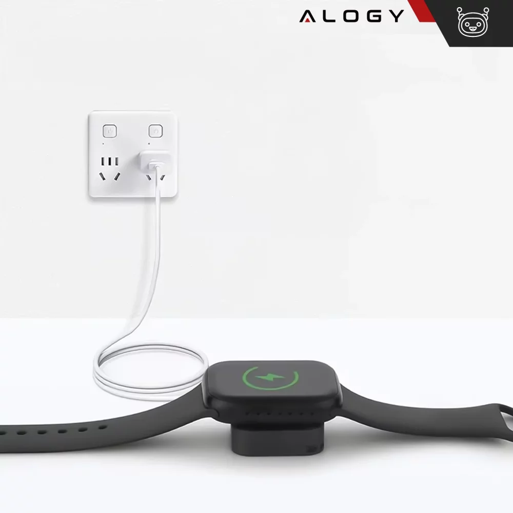 Ładowarka indukcyjna do Apple Watch Alogy Charger z portem USB-C mini ładowarka przenośna Czarna