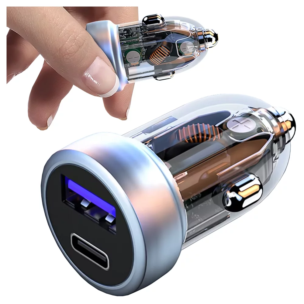 ✅ Ładowarka wyróżnia się przezroczystą obudową oraz metalowym wykończeniem, co nadaje jej nowoczesny i elegancki wygląd.