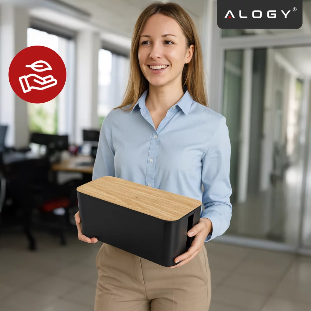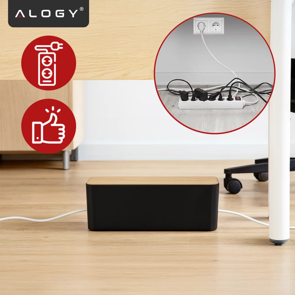 ✅ Organizer Alogy BOX L pozwala schować wszystkie przewody, listwę i ładowarki w jednym miejscu. Dzięki temu Twoje otoczenie staje się czyste, uporządkowane i przyjemniejsze do pracy czy relaksu.