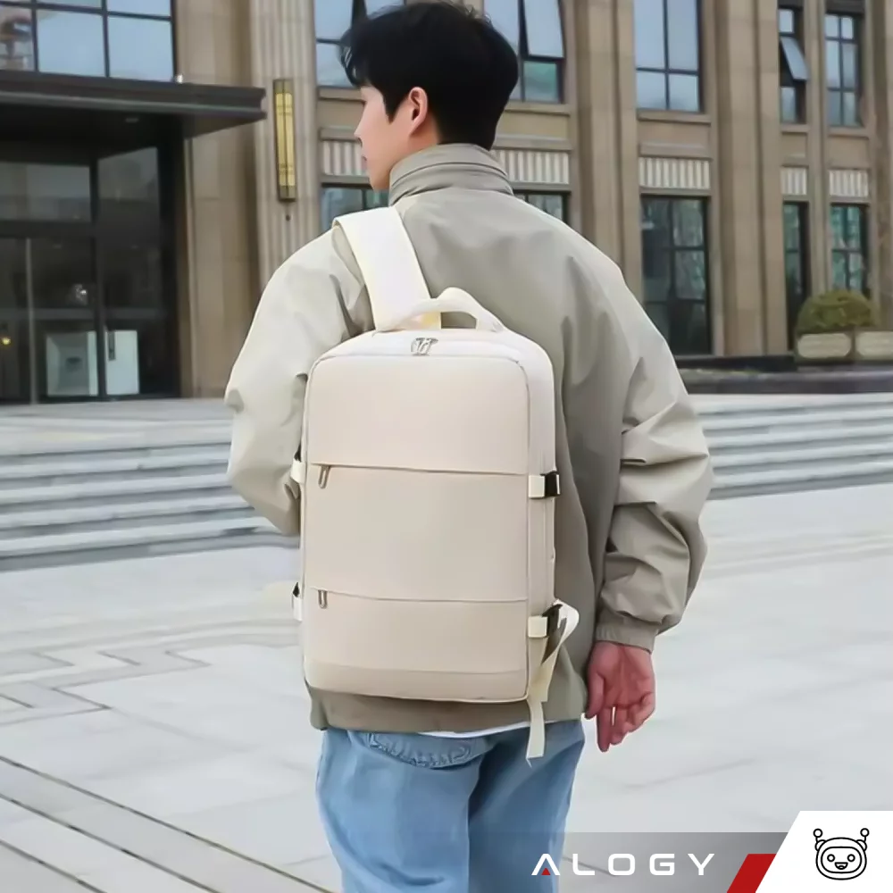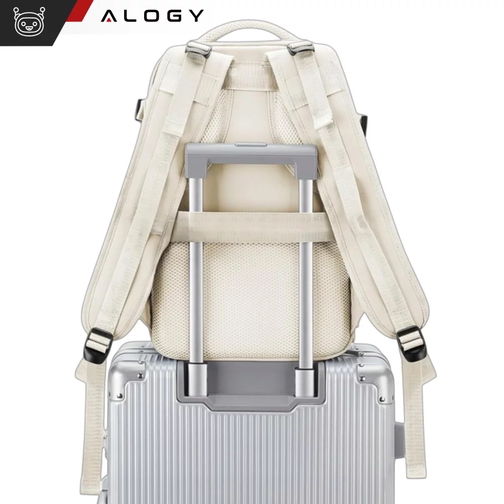 Plecak na laptopa damski podróżny na walizkę bagaż do samolotu pracy szkoły 45x30x20cm Alogy Beżowy