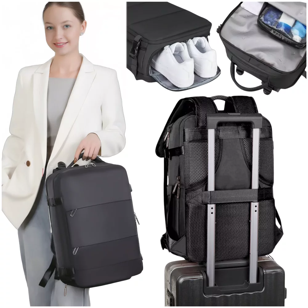 ✅ Funkcjonalny – przegrody na laptopa, dokumenty, akcesoria, organizer i oddzielna kieszeń na buty, mocowanie na walizkę.