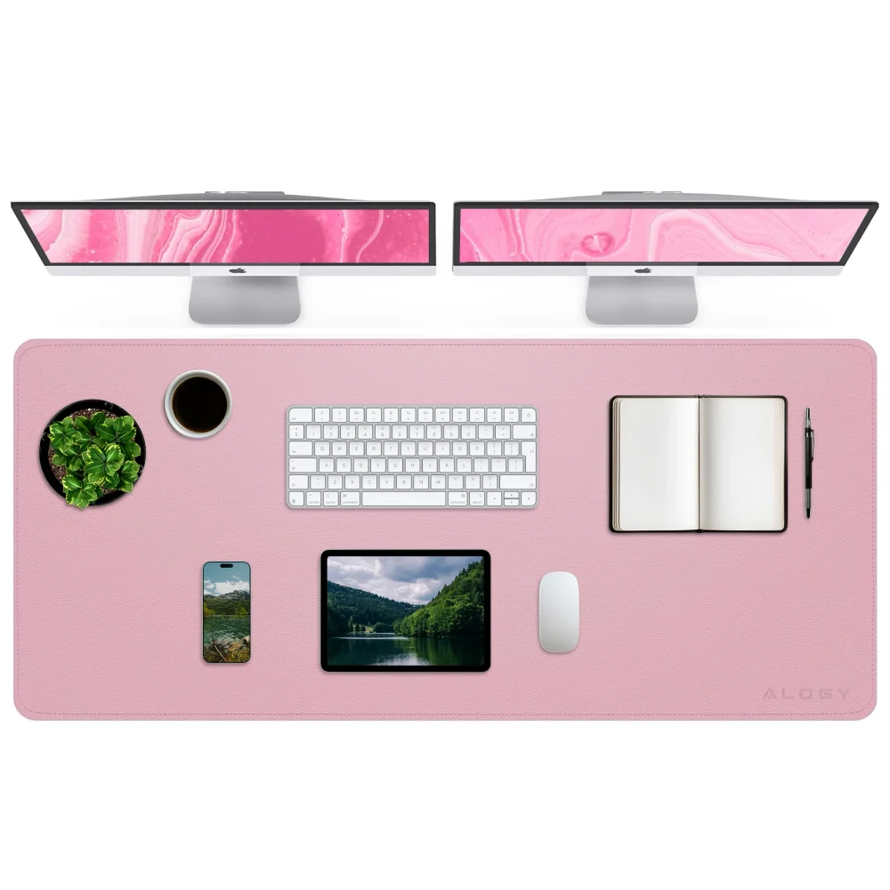 ▶️ Podkładka na biurko 120x60 cm Alogy WorkMat™ PU skóra Różowa - Zawsze czysty i estetyczny blat!