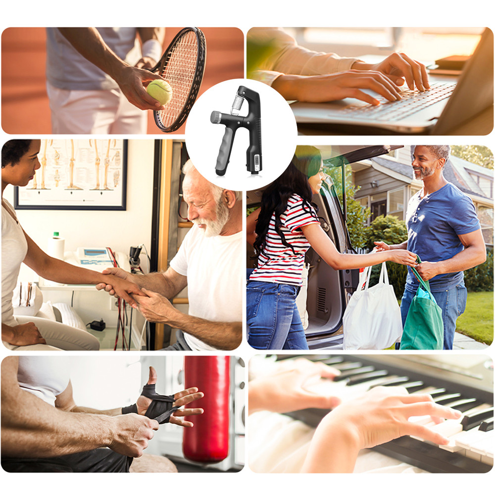 Opinie o Ściskacz grip do ćwiczeń dłoni rąk regulowany 10-100 kg trening sport rehabilitacja z wyświetlaczem licznik Czarny
