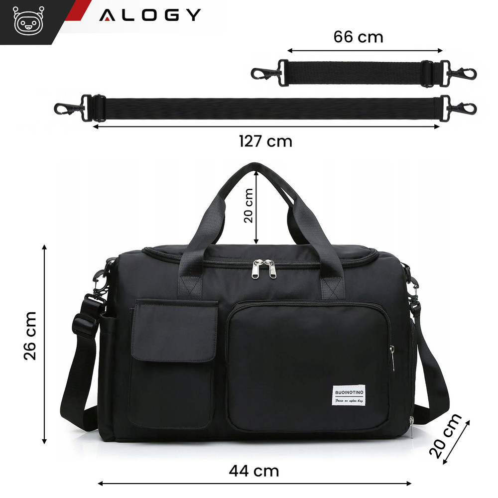 Opinie o Torba podróżna sportowa na ramię męska damska na siłownie do samolotu bagaż podręczny 44x26 treningowa czarna Alogy Czarny