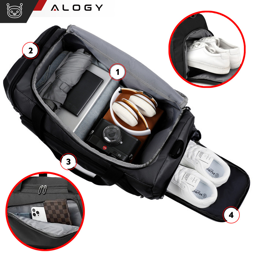 - 4. Kieszeń z wentylacją na obuwie - wygodne przechowywanie butów