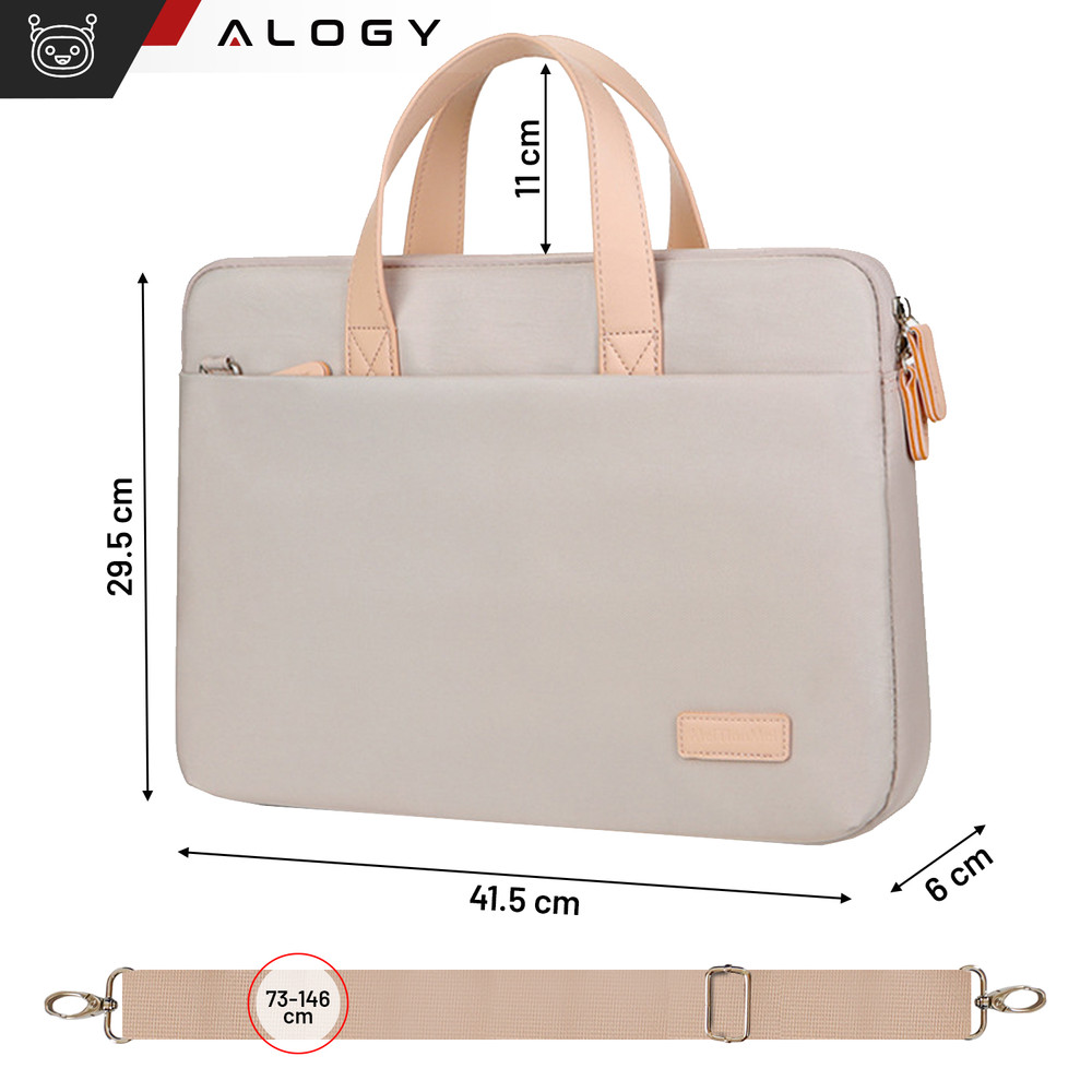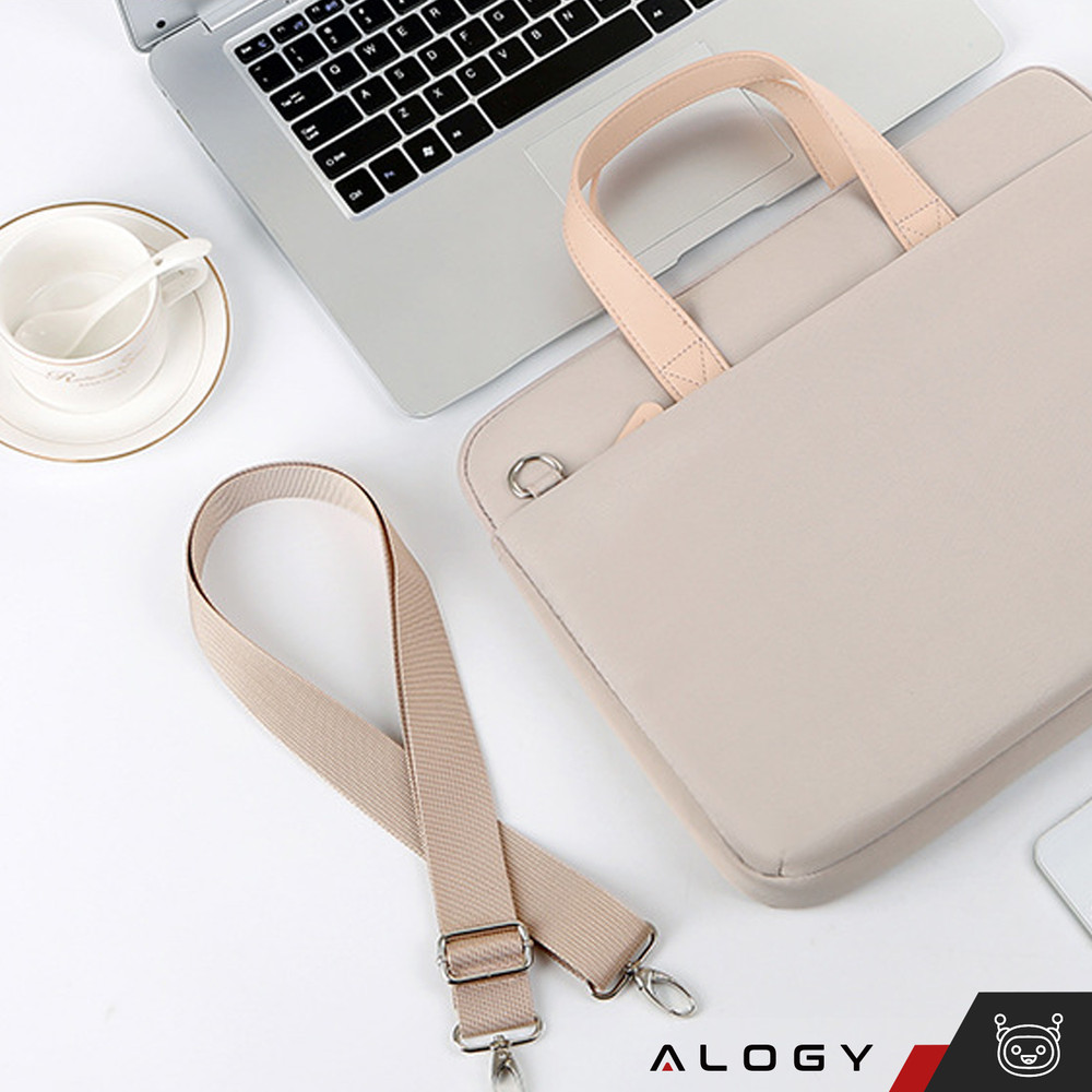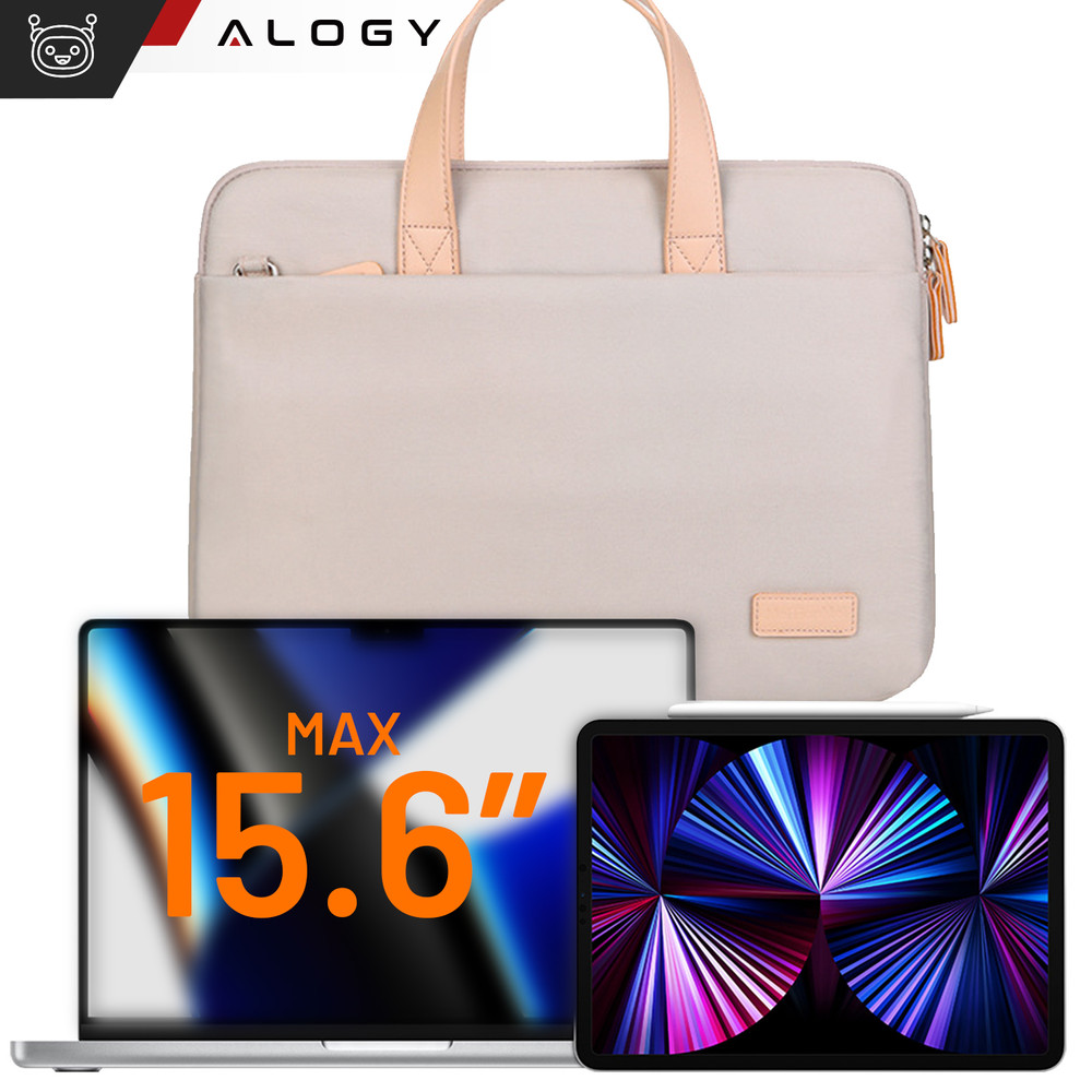Opinie o Torba teczka na ramię męska damska na laptopa tablet 15.6 cal materiałowa podróżna pokrowiec Alogy Beżowa