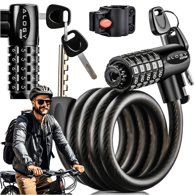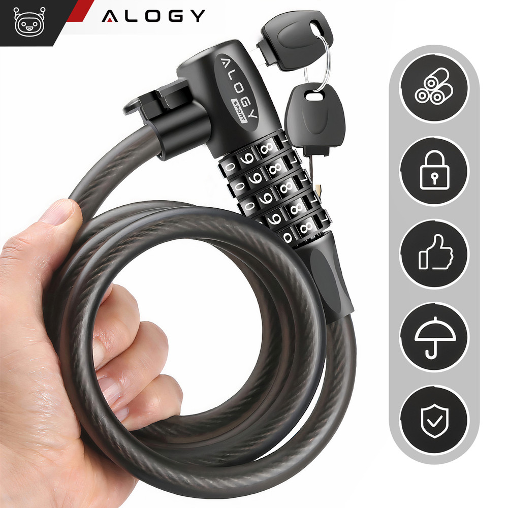 Opinie o Zapięcie do roweru blokada rowerowa mocna linka 120cm zabezpieczenie rowerowe na kod szyfr kluczyk Alogy czarny